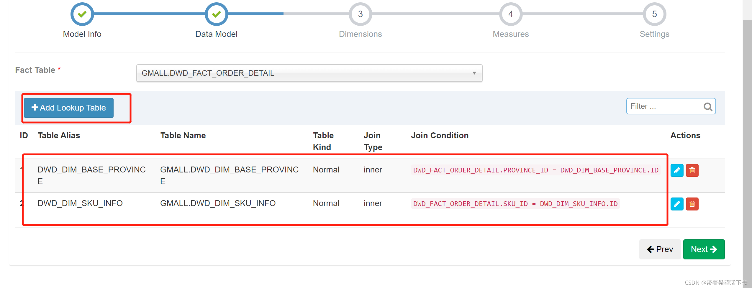 选择维度表,并指定事实表和维度表的关联条件,点击Ok