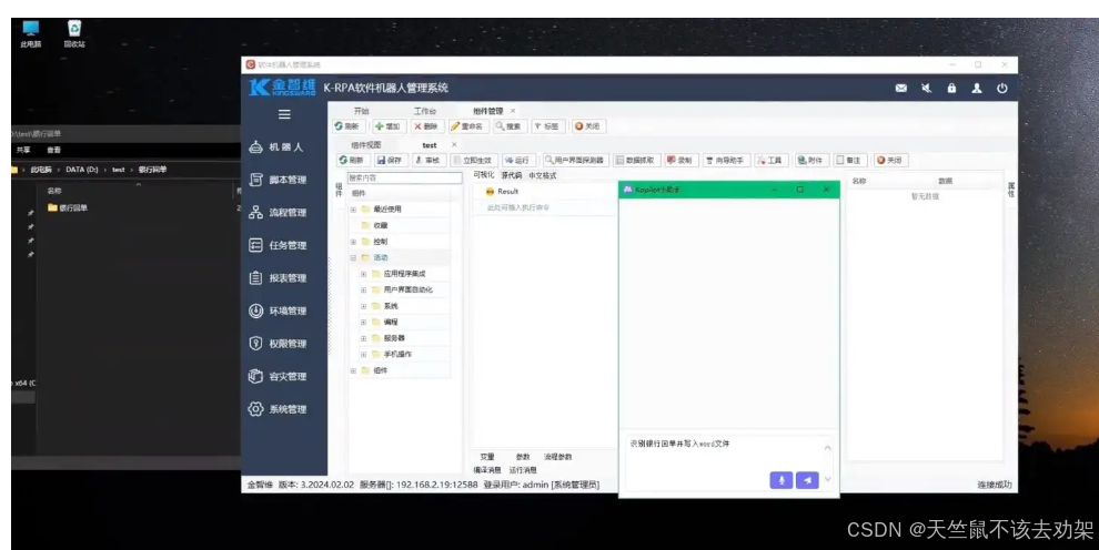 原先,我们使用的流程自动化机器人RPA,基本上都是需要部署,然后需要技术人员根据真实的工作流程通过拉动模块去实现自动化。例如:如果我们需要一个每天能在固定时间登陆某个银行,下载关于哪个账号的流水,然后在制作成表格,再汇总登记哪个财务系统里面。我们是需要按照步骤——1.打开网页--2.登陆XX网址---3.登陆哪个账号---4.获取密码······等等,听起来也简单,完成一个完整的步骤就能实现全自动。