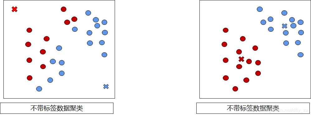 没有标签的情况下实现聚类的一个思路:给出中心点,根据数据到中心点距离判断类别