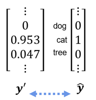 我们的真实值,代表的是概率,即是cat的概率为1,而预测值的数字并非如此,我们需要将其转换成概率的形式,此时我们借助Softmax函数,我们一般将softmax的输出视作模型预测的概率分布。