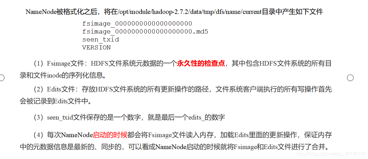 Fsimage:NameNode内存中元数据序列化后形成的文件。