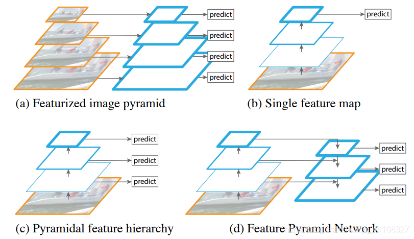 上图(a)是处理这类问题最常用的方法,即特征金字塔,这种方法在传统的手动设计特征的方法中非常常用,例如DPM方法使用了接近10种不同的尺度获得了不错的效果。
