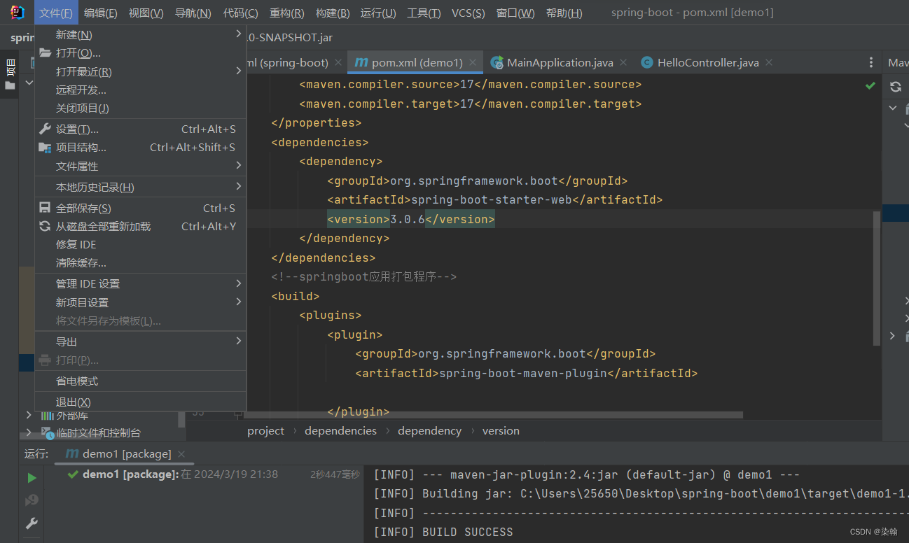 打包完成后jar包就在target文件夹里面