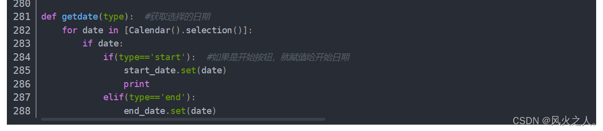 if(type=='start'): #如果是开始按钮,就赋值给开始日期