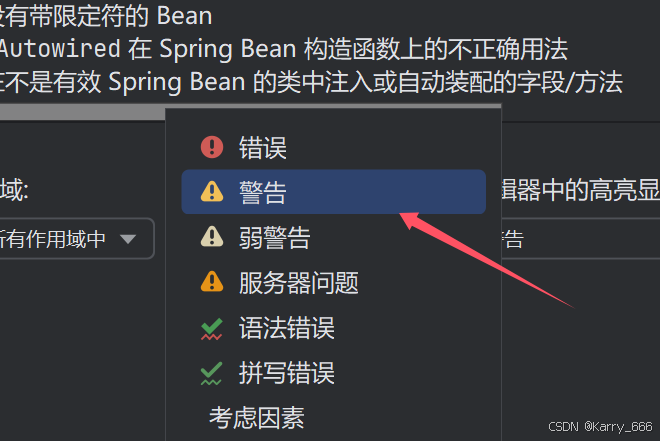 这是因为idea自动识别的 错以为我们的mapper无法进来。mapper注入的时候 依赖一直注入不进来 爆红。解决方法:设置-->编辑器-->检查。把这里的错误改成警告。