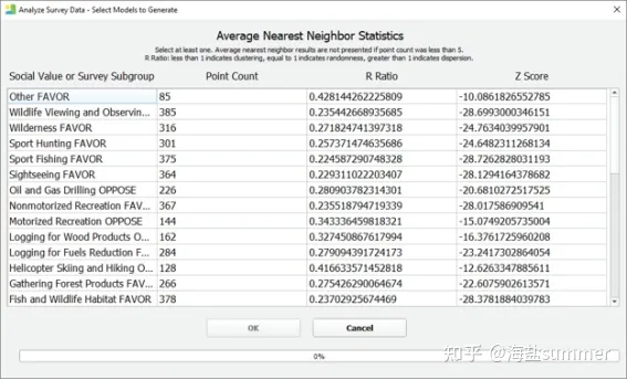 对SURVERY_POINTS数据进行平均最近邻分析,得出平均最邻近比率(R-ratio)和标准差(Z-score),突出每种价值在区域内的重要性位置;