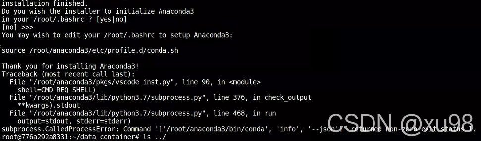 subprocess.CalledProcessError:Command '[' /root/anaconda3/bin/conda', '/info', '--json',