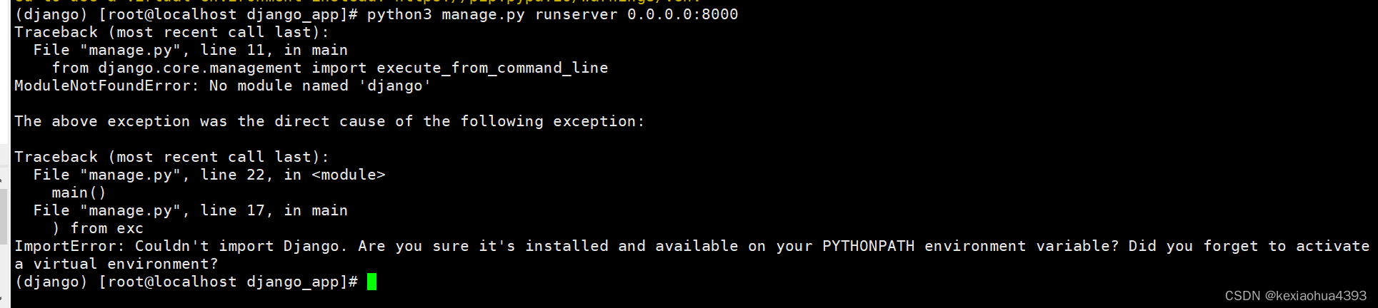 前面不是已经安装过 Django 了吗,为什么这里还要安装?原因是前面是在宿主机安装的,容器里是没有 Django 的!