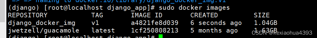 这是你应该可以看到有一个名为django_docker_img的docker镜像创建成功了,版本v1。