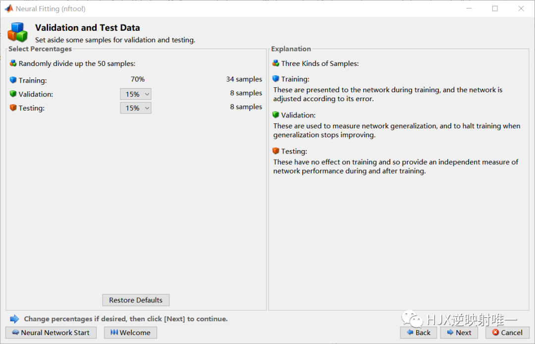其中我们设定Training为70%,Validation为15%,Testing为15%。