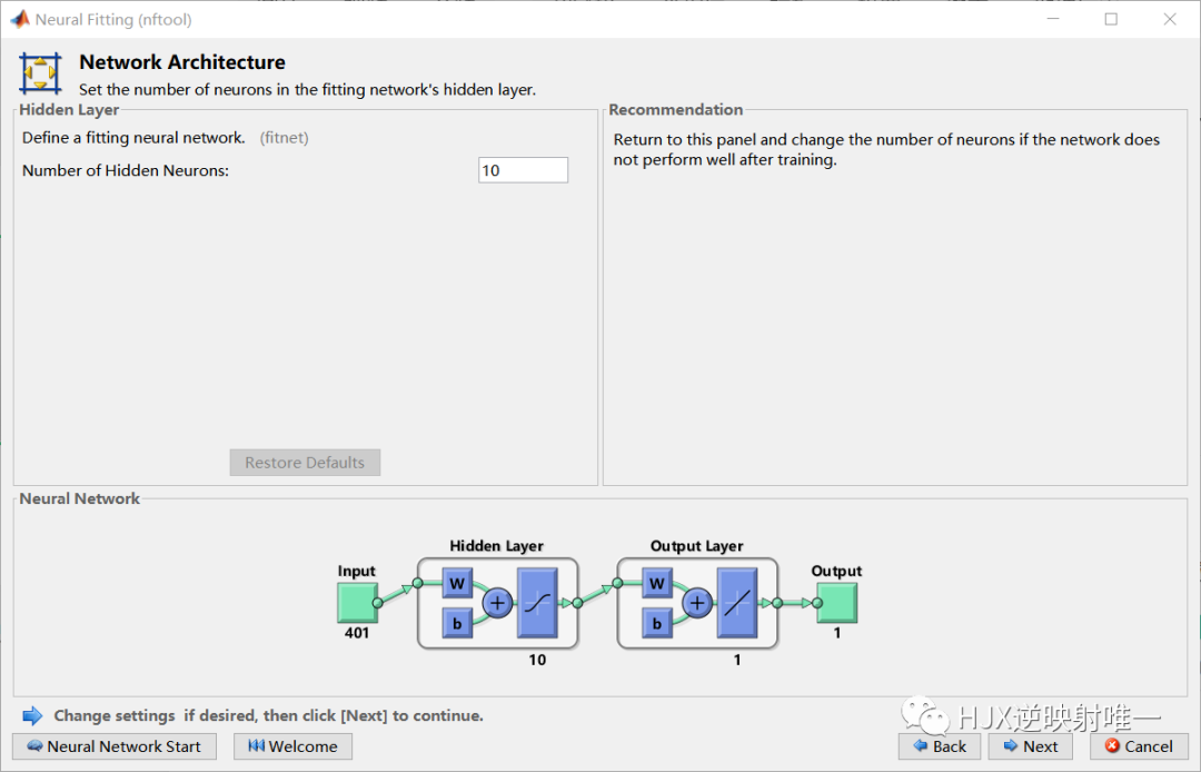 隐层神经元的个数设定为10,这个参数可以根据拟合的结果再次进行调整。