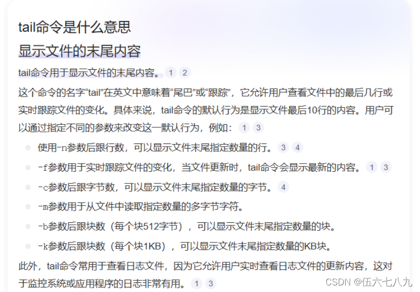 tail 显示文件末尾内容【日志一般查看最新的所以只需展示末尾日志】
