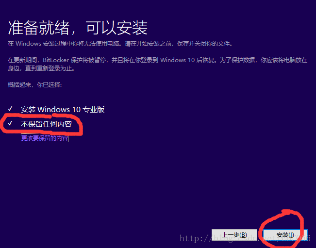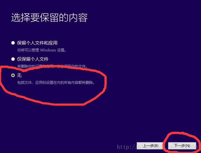 - 此时,你可以选择保留你的个人文件和应用(要求C盘剩余空间要比较大,并且速度较慢),但也可以选择不保留任何内容(相对来说对C盘剩余空间的需求比较少,速度较快。)不过笔者建议不保留任何内容,如果你的C盘里有个人需要保留的文件,可以先移到其他盘。