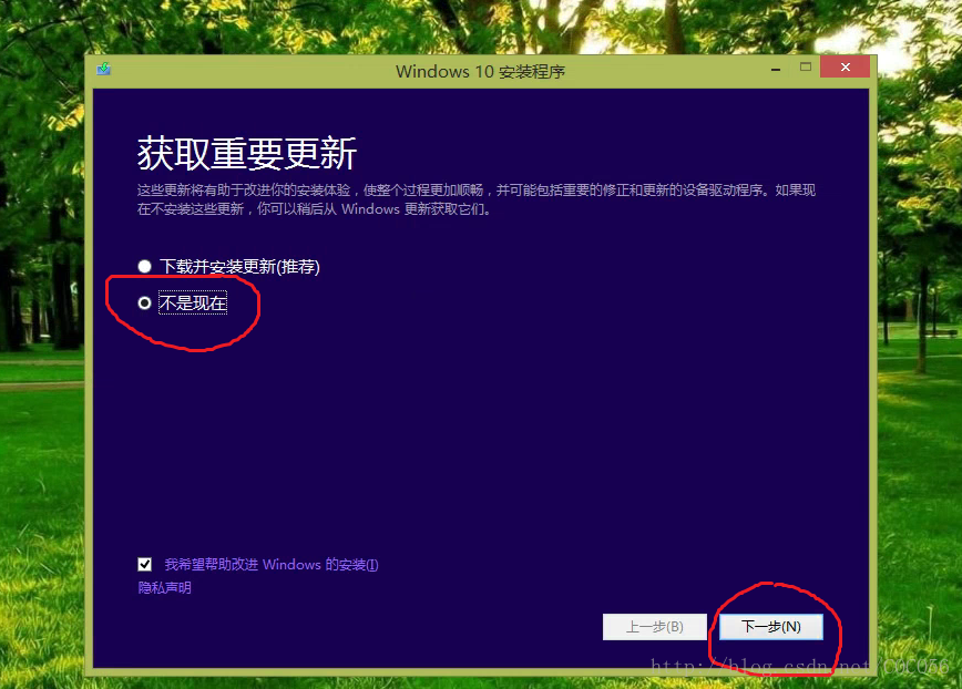 - 会提示你是否现在就打补丁,先选择不是现在,不然会很慢,需要打补丁的话也可以等安装完了操作系统再打补丁,这个随意吧。