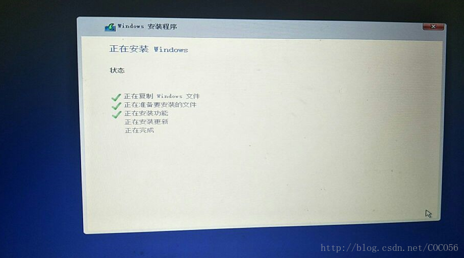 - 这时等待即可,如果通过f12或者fn+f12打开启动菜单的方式从U盘启动的,那么待安装完成后,系统重启时无需拔出U盘,但如果通过进BIOS更改的启动序列的方式从U盘启动的,那么待安装完成后,系统重启前记得把U盘拔出,不然又从U盘启动让你装系统了。