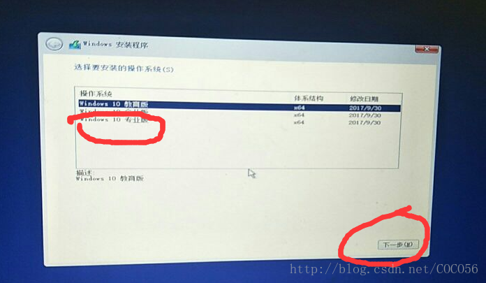 - 笔者建议个人安装专业版的windows10版本,选择windows10 专业版之后单击"下一步"