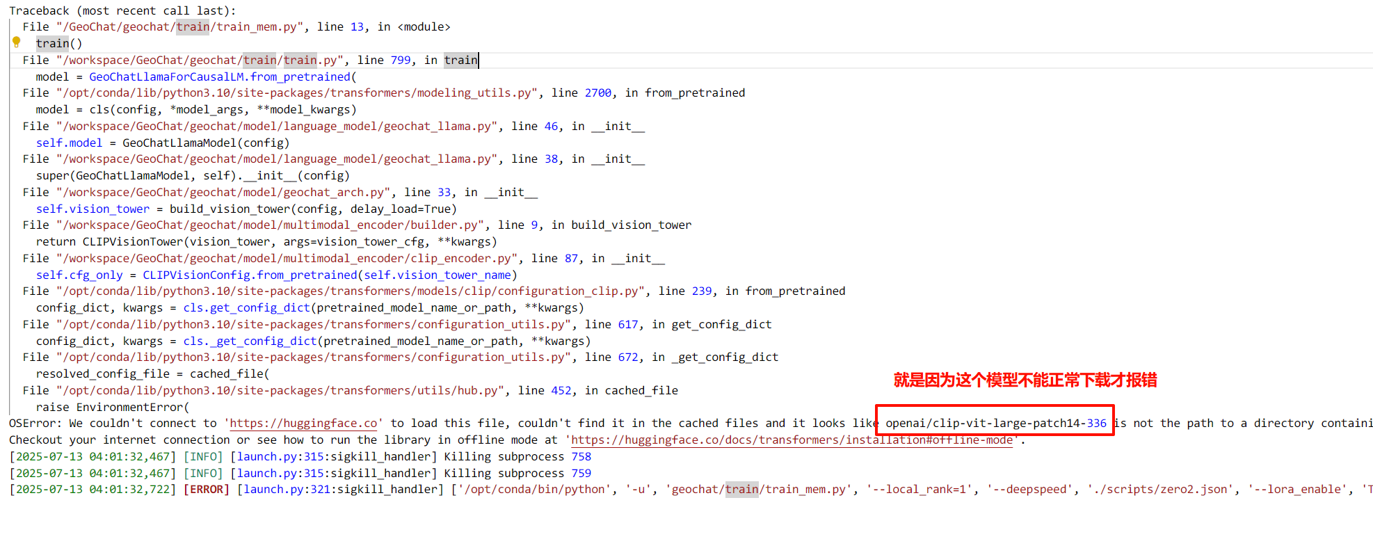 OSError: We couldn't connect to 'https://huggingface.co' to load this file, couldn't find it in the cached files and it looks like openai/clip-vit-large-patch14-336 is not the path to a directory containing a file named config.json.