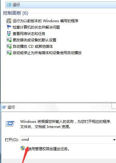 2、接着会弹出运行窗口,在空白框中输入cmd然后回车。