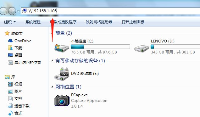 4、然后我们打开要安装打印机的电脑,在我的电脑里输入刚刚记下来的ip地址,然后回车。