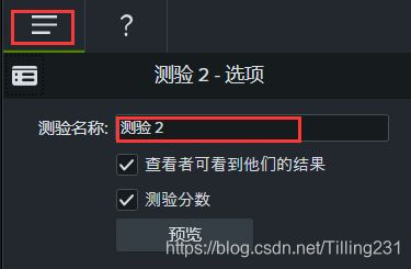 6)点击属性面板上方的“测验选项”可以更改测验名称;