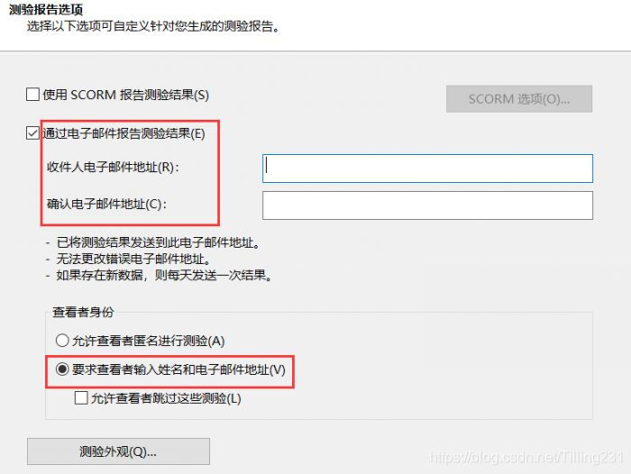 5、点击下一步,其他选项保持默认,在测验报告界面,我们可以设置电子邮箱来接收测验结果。
