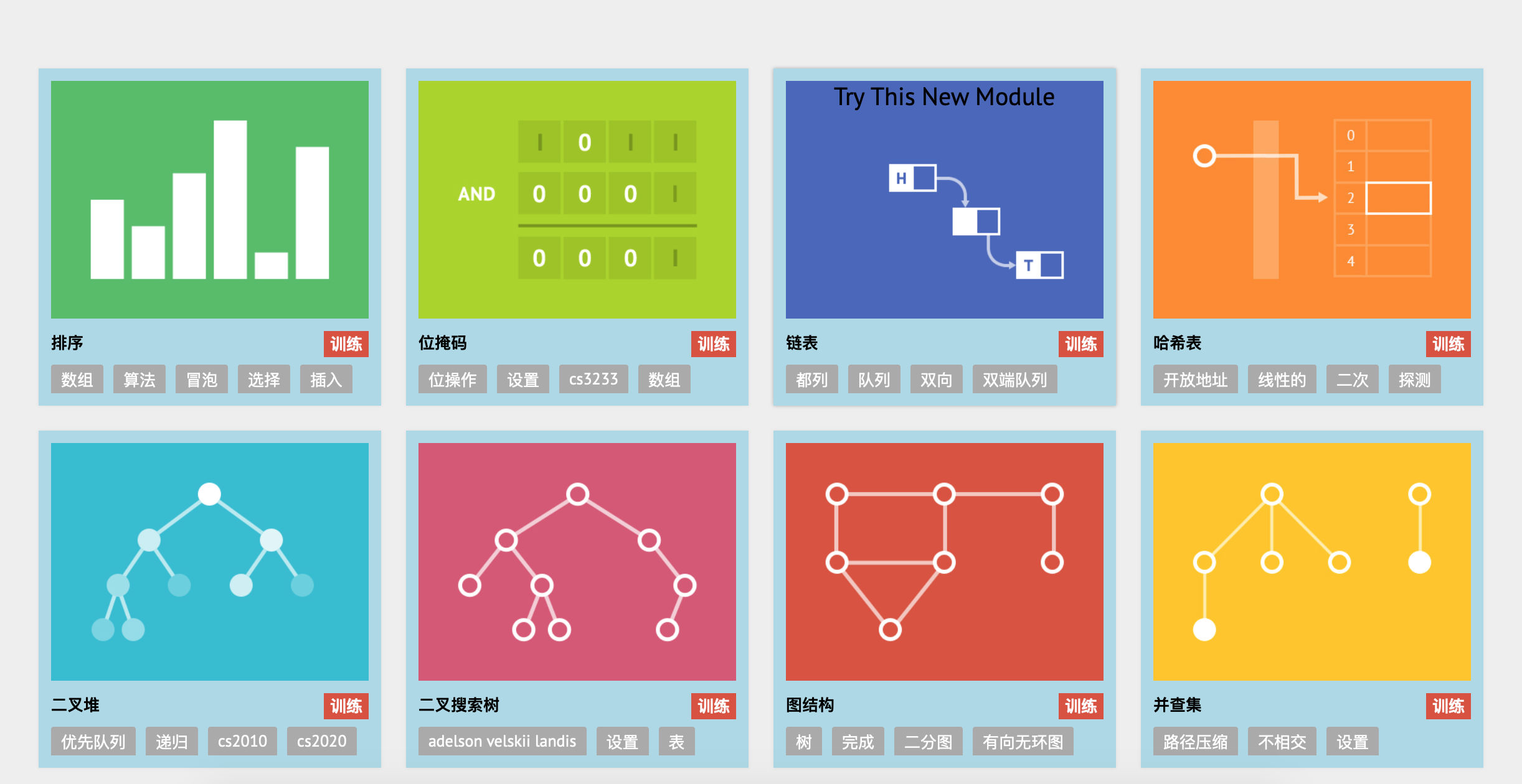 如果你想刷算法题,那么可以访问 AlgoMooc,每道题目都有动画和图片。