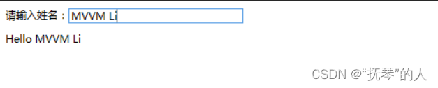 (当修改输入框的内容的时候,对应绑定数据相应改变,并触发对UI的修改,所以下面那行文字也相应改变改变。)