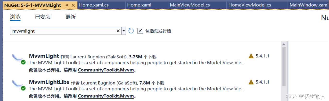 当安装完成之后由于版本原因在ViewModelLocator文件中的using引用会报错进而导致程序无法执行,所以需要修改引用。