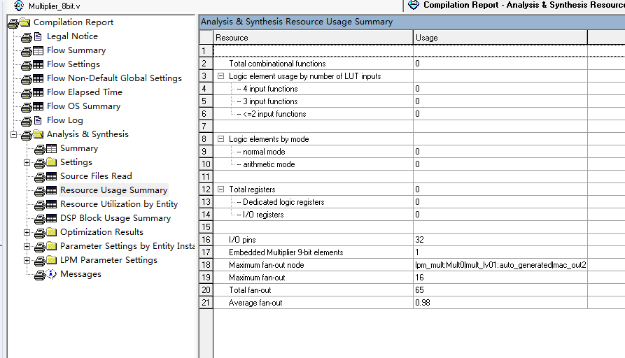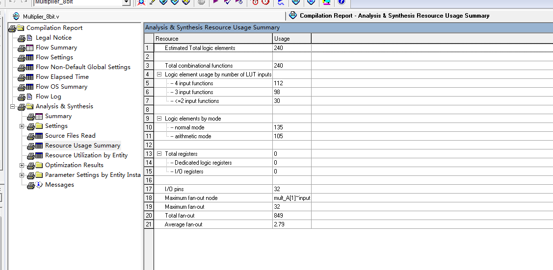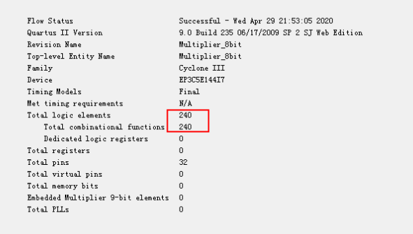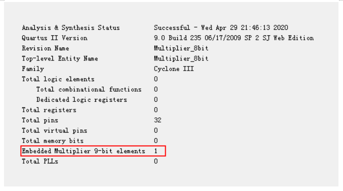 占用了内部的专用乘法器资源,没有用逻辑资源