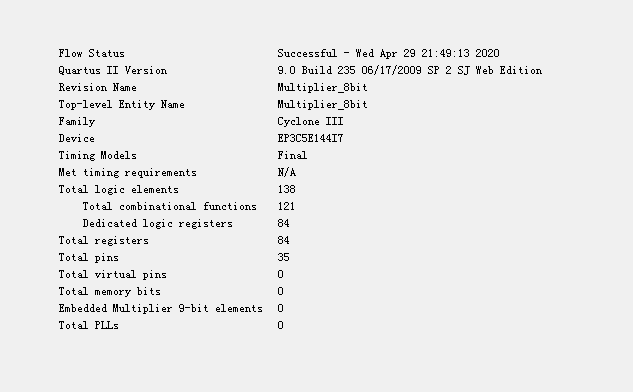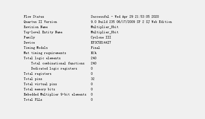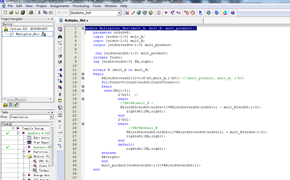 名称:基于FPGA的使用booth、移位、并行算法实现乘法器Verilog代码Quartus仿真(文末获取)