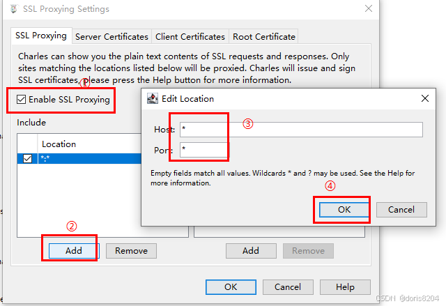 勾选Enable SSL Proxying,同时在Include中添加ip\端口