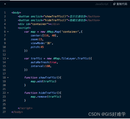 路况信息就被移除了。 那么,这个功能怎么让⽤户能使⽤呢,可以做⼀个按钮来触发事件来实