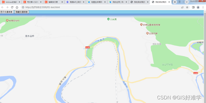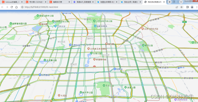 将交通图层添加到map上,即可。看⼀下效果:
