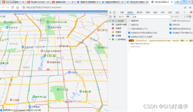如果不想看实时路况,想移除怎么办呢,按F12进⾏开发环境,选择console控制台,如图,输⼊