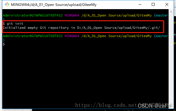 第一步 :电脑上安装好git后,在本地新建一个文件夹 例如 giteeGood,在这个文件夹 里 右键Git bash here进入控制面板!第二步:选中文件件右键Git bash here进入控制面板,输入命令git init 初始化化文件夹,把这个文件夹变成Git可管理的仓库,从get下载的代码文件就会被下载保存的这个文件夹。...