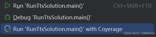 注意:可以选择下图Run...with Coverage选项运行,有时候直接运行会出错。