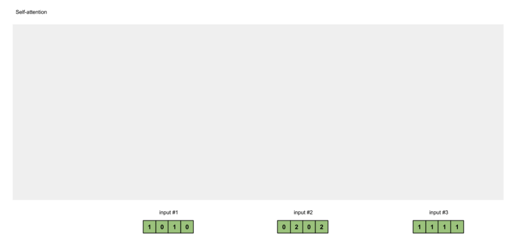 假设Self Attention网络的输入是3个向量,每个向量的维度是4维,那么如图下所示。
