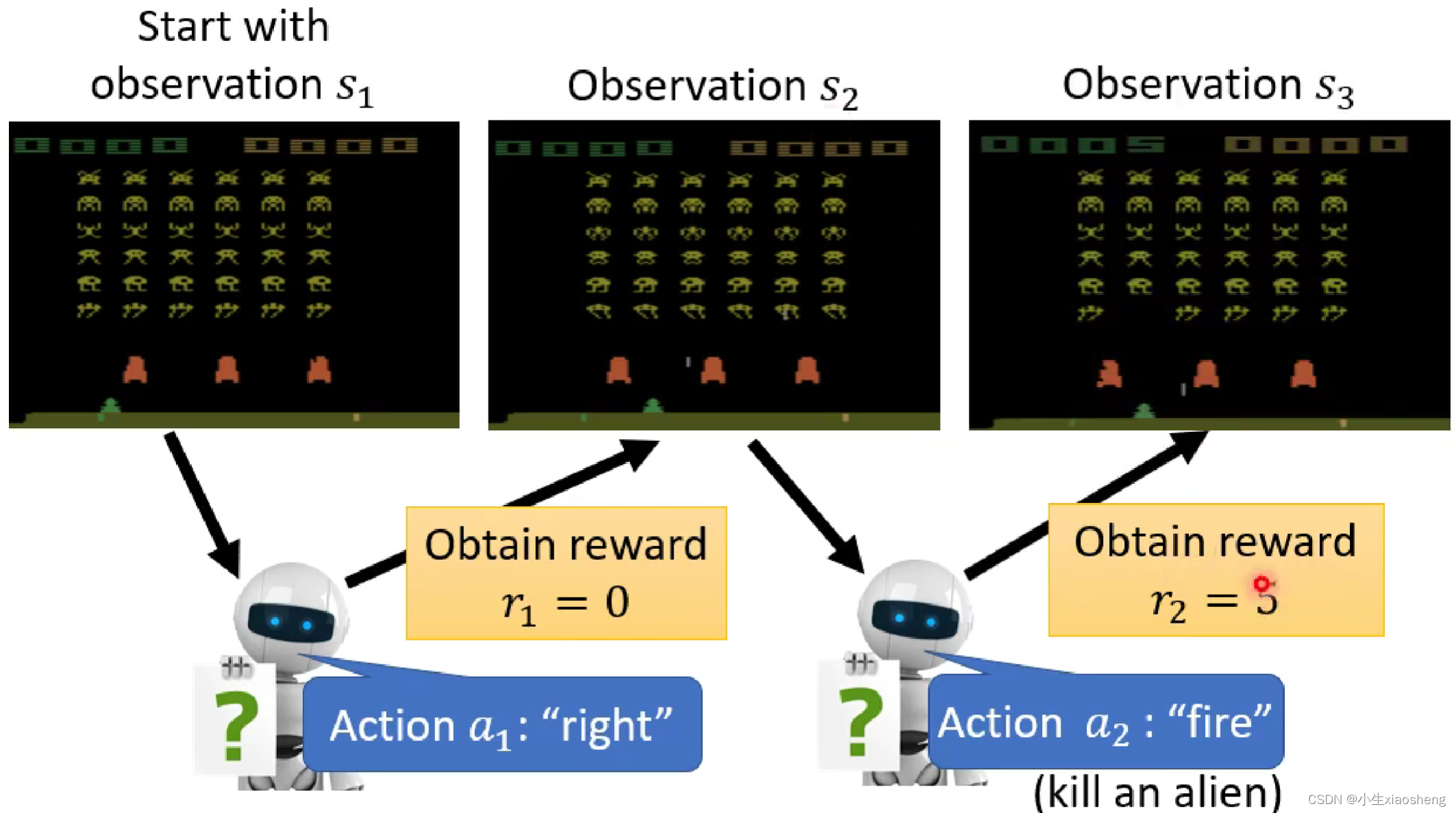 机器学习的三个步骤是:1.找出定义函数中的所有未知数;2.定义loss函数来训练数据;3.找到未知数参数从而得到最小的loss。而RL和这三个步骤是一样的。
