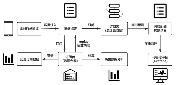 本节结合现实场景,介绍如何使用 DolphinDB 处理实时的订单流数据,基于预测模型实时估计行程时间。