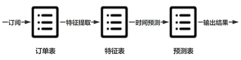 为获取行程数据并使用机器学习模型预测行程时间,用户需要创建三个流表实现实时预测,一是创建订单信息表订阅乘客行程信息,二是创建特征表完成对订单信息的特征提取;三是创建预测表预测特征流数据表发送的行程特征信息,输出预测结果。