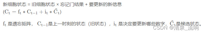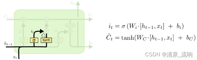 第二步: 决定从新的信息中存储哪些信息到细胞状态中去。即产生要更新的信息。