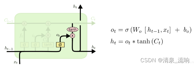 Ct通过tanh层之后与Ot相乘,成为输出的内容ht。