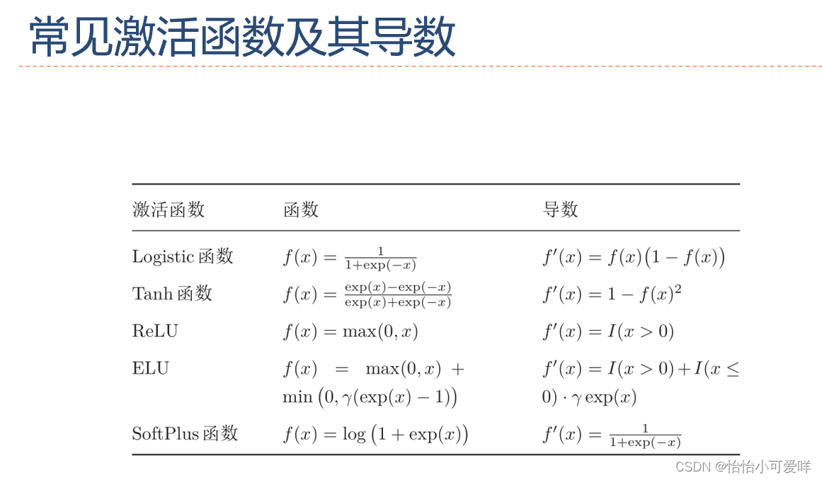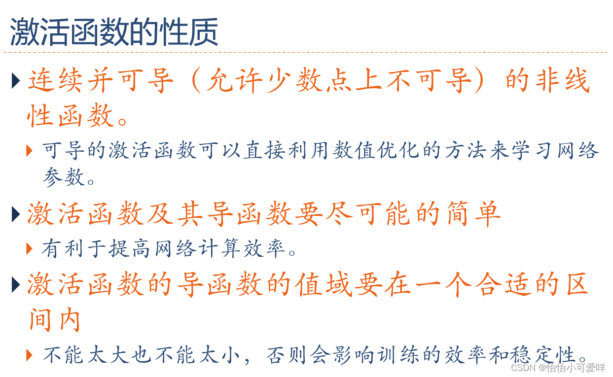 2.激活函数的性质和常见的激活函数(公式、特性、导数等)。