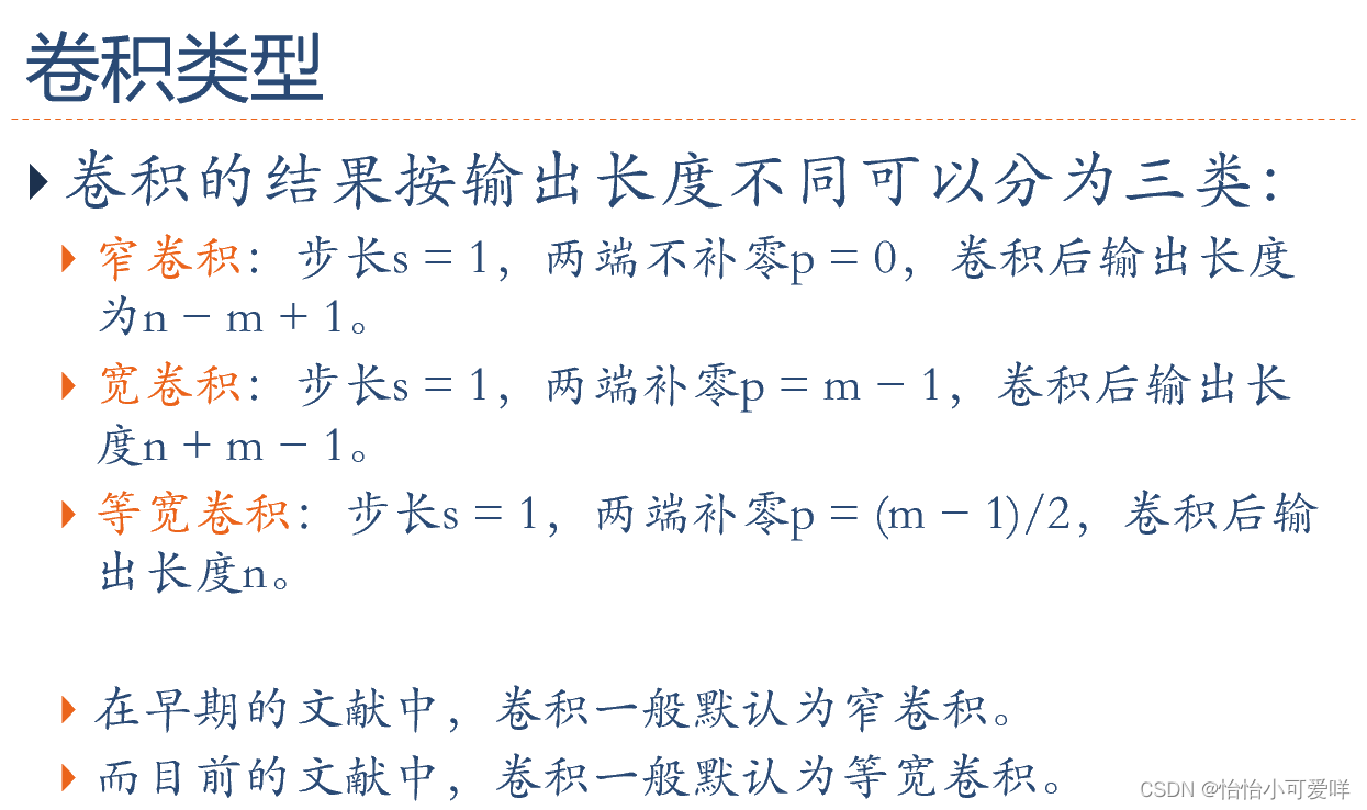 3.卷积的定义以及计算,卷积的类型(卷积填充补零的数量等)。