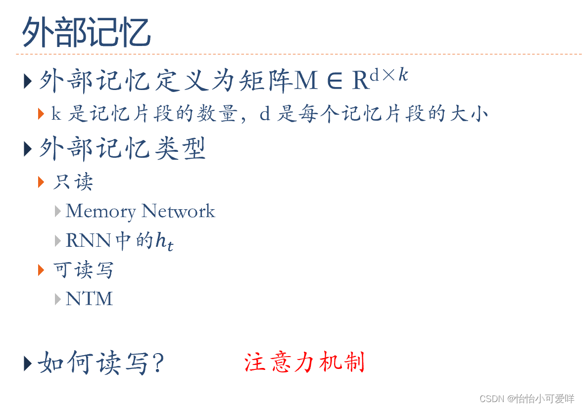 4.外部记忆的种类(结构化外部记忆和联想记忆)、定义和区别。