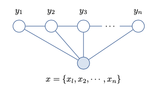 条件随机场(Conditional Random Field,CRF)试图对多个变量在给定观测值后的条件概率进行建模。 x = x l , x 2 , . . . , x n x = {xl, x2, . . . , xn} x=xl,x2,...,xn 为观测序列, y = y l , y 2 , . . . , y n y = {yl, y2, . . . , yn} y=yl,y2,...,yn 为对应的标记序列,条件随机场的目标是构建条件概率模型 P ( y ∣ x ) P (y|x) P(y∣x)。在中文分词任务中,观察序列 x x x 对应输入的字序列 c 1 , c 2 , ⋅ ⋅ ⋅ , c n {c1, c2, · · · , cn} c1,c2,⋅⋅⋅,cn,标记序列为每个字对应的 B I E S BIES BIES 标签。在实际应用中,对序列任务进行建模时,通常使用如下图示的链式结构,即线性链条件随机场(Linear-chain CRF)。