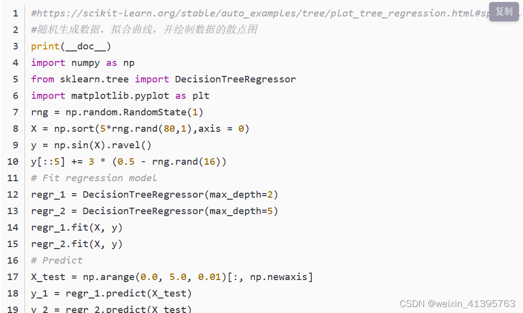 回归树总体流程也是类似,区别在于,回归树的每个节点(不一定是叶子节点)都会得一个预测值,以年龄为例,该预测值等于属于这个节点的所有人年龄的平均值。分枝时穷举每一个feature的每个阈值找最好的分割点,但衡量最好的标准不再是最大熵,而是最小化均方差即(每个人的年龄-预测年龄)^2 的总和 / N。也就是被预测出错的人数越多,错的越离谱,均方差就越大,通过最小化均方差能够找到最可靠的分枝依据。分枝直到每个叶子节点上人的年龄都唯一或者达到预设的终止条件(如叶子个数上限),若最终叶子节点上人的年龄不唯一,则以该节点上所有人的平均年龄做为该叶子节点的预测年龄。