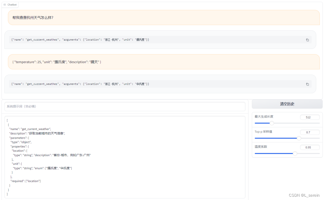 该命令会在本地启动一个和 OpenAI 格式相同的 RESTFul API,这时我们可以直接用本地模型来替代 GPT-3.5 的函数调用功能!下面是一个使用 openai-python 库来调用本地模型,实现 LLM Agent 功能的示例代码。