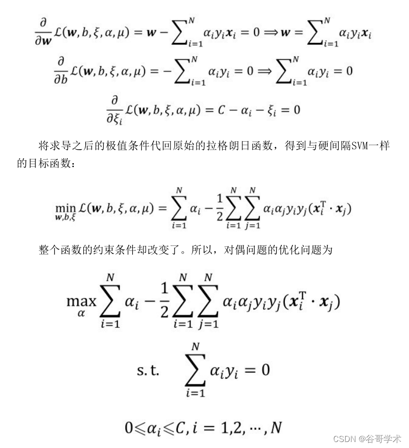 接?来的求解过程和线性可分SVM的优化过程类似,首先将软间隔最大化