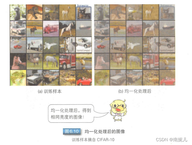 首先计算出所有训练样本的均值图像,然后相减。这样一来各数据的均值就会变为0,图像的亮度就会得到抑制。